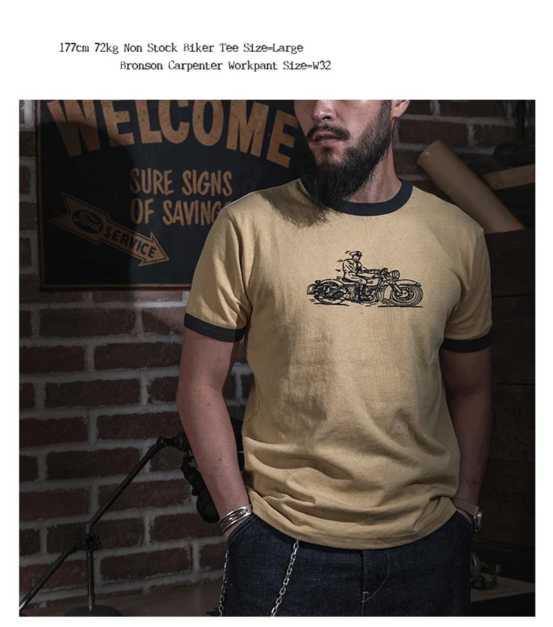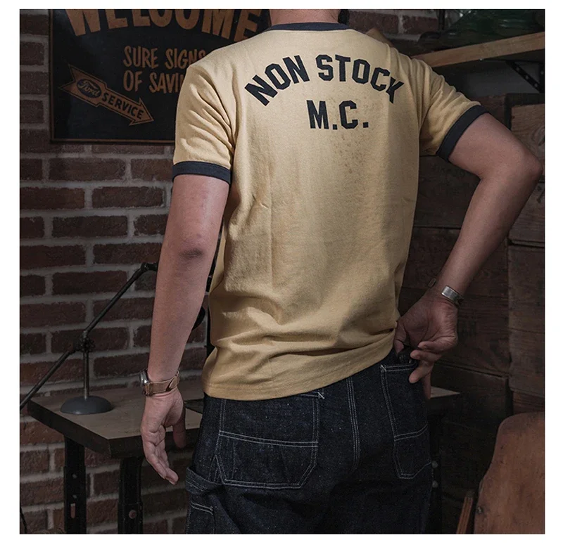 Non Stock Rider Ringer T-Shirt Motorcycle Graphic Mens Short Sleeve Tee Slim Fit